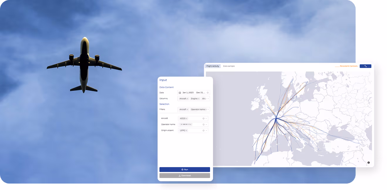 Estuaire leverages Automatic Dependent Surveillance-Broadcast (ADS-B) from the aircraft. It is used in state-of-the-art climate modeling to derive accurate, per-flight emissions data. If you already have an antenna installed, we should talk.